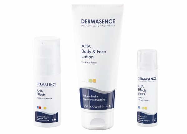 DERMASENCE AHA Effects is een bijzonder milde fruitzuurcrème. Het product is ideaal voor een rijpe en droge huid die naar rimpels neigt. Dankzij 8% aan natuurlijke fruitzuren – melkzuur, citroenzuur en appelzuur — is de AHA Effects zeer effectief. Het lost de bovenste laag dode huidcellen op – de “grijze waas” verdwijnt en de huid krijgt een frissere, stralende uitstraling. Bovendien stimuleert de AHA Effects de huideigen herstelfunctie stimuleert het de collageenaanmaak bij langdurig gebruik. Het verhoogt het vochtgehalte en maakt de huid gladder en egaler. Ook bevat het product Vitamine E dat als anti-oxidant dient en groene thee-extract zorgt voor een hoge verdraagzaamheid. Dit maakt het product ook geschikt voor de gevoelige of zonbeschadigde huid — ideaal dus voor fruitzuur-beginners die na de zomer willen beginnen met AHA-verzorging.
