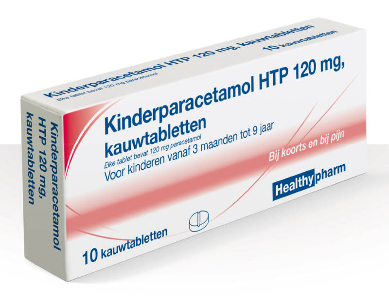Healthypharm Kinderparacetamol kauwtablet 120 mg is geschikt voor kinderen van 3 maanden tot 9 jaar. Elke tablet bevat 120 mg paracetamol. De paracetamol kauwtabletten zijn speciaal behandeld om de nare smaak van de paracetamol zoveel mogelijk tegen te gaan. De tabletten moeten worden op gekauwd of fijngemaakt en met water of limonade worden ingenomen. Voor meer informatie: www.healthypharm.nl.