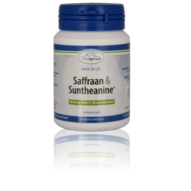 Saffraan (Crocus sativus) is het rode goud in keukens over de hele wereld en heeft bijzondere gezondheidsbevorderende eigenschappen. Van Saffraan is bekend dat het bijdraagt aan een positieve gemoedstoestand. De saffraan die Vitakruid verwerkt heeft in dit product is het gepatenteerde hoogwaardige extract Affron®. Dit saffraan is vervaardigd uit 100% echte saffraan, van gecontroleerde Spaanse teelt, bevestigd door DNA testen. Door de speciale extractiemethode ontstaat een gestandariseerd extract van 3,5% Lepticrosalides. Dit complex bestaat uit de werkzame stoffen safranal, crocine en picrocrocine. Er is dan ook uitgebreid wetenschappelijk onderzoek gedaan waarbij het effect op de gemoedstoestand is gemeten. De dosering die nodig is voor een positief effect op de gemoedstoestand is 28 mg Affron® per dag.